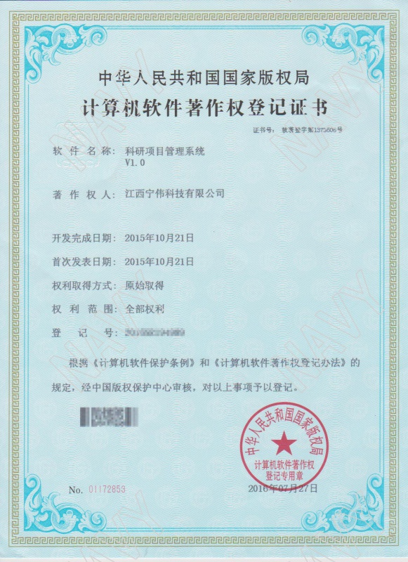 江西寧偉科技有限公司成功獲得《科研項目管理系統(tǒng)》軟件著作權(quán)證書